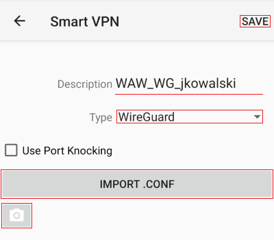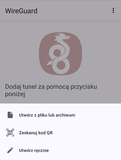 Zaimportuj konfiguracjÄ™ WireGuard z pliku .conf lub zeskanuj kod QR